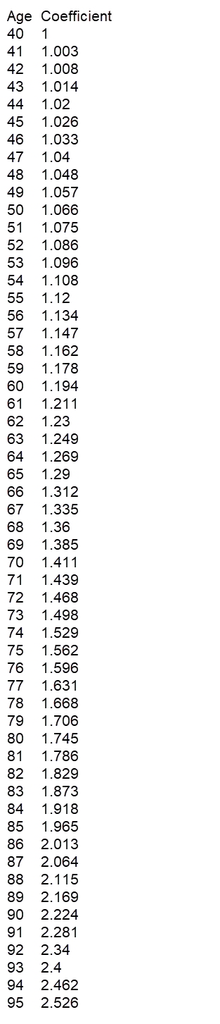 A Master lifter's age-adjusted DOTS are calculated by multiplying their "DOTS score" by their "USA Powerlifting Age Coefficient" using the below: